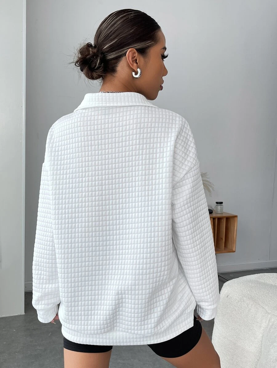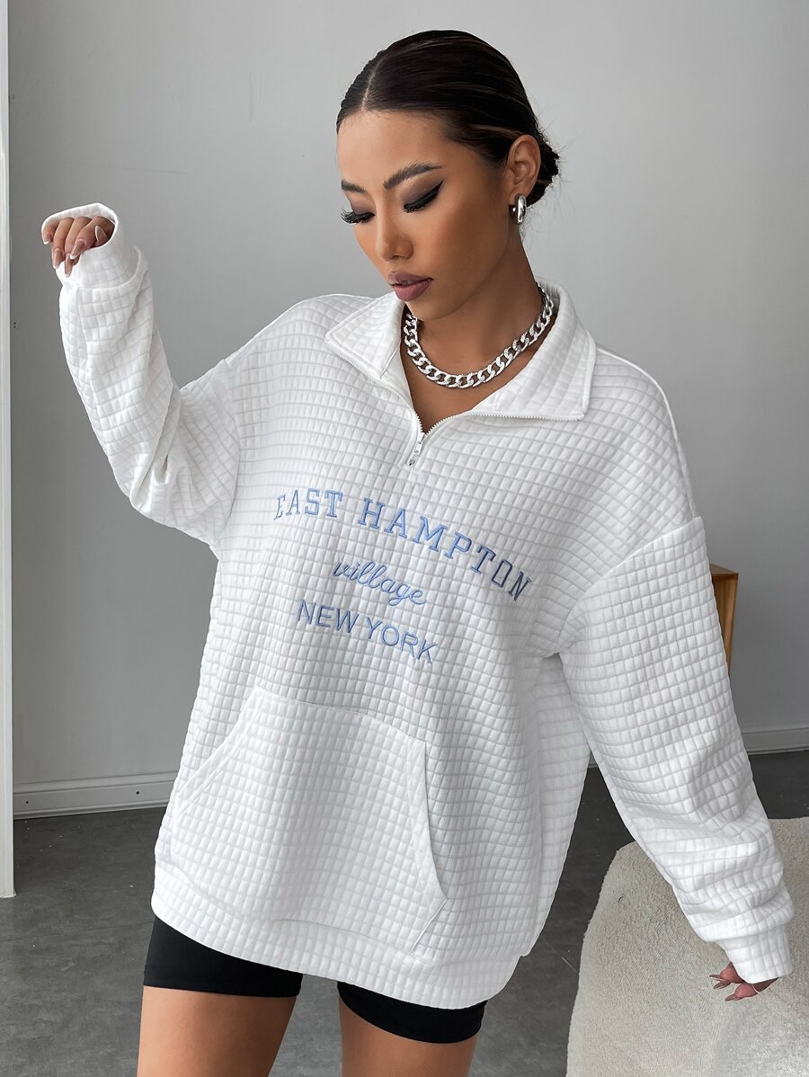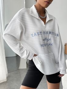 Sudadera con bordado de letra con cremallera media de hombros caídos