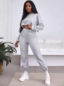 con estampado de letra Sudadera corta & Pantalones deportivos
