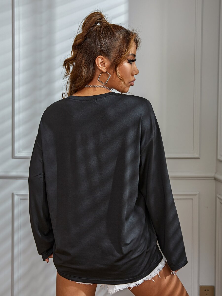 Camiseta con gráfico de letra y hombros caídos, blusas gráficas para mujeres