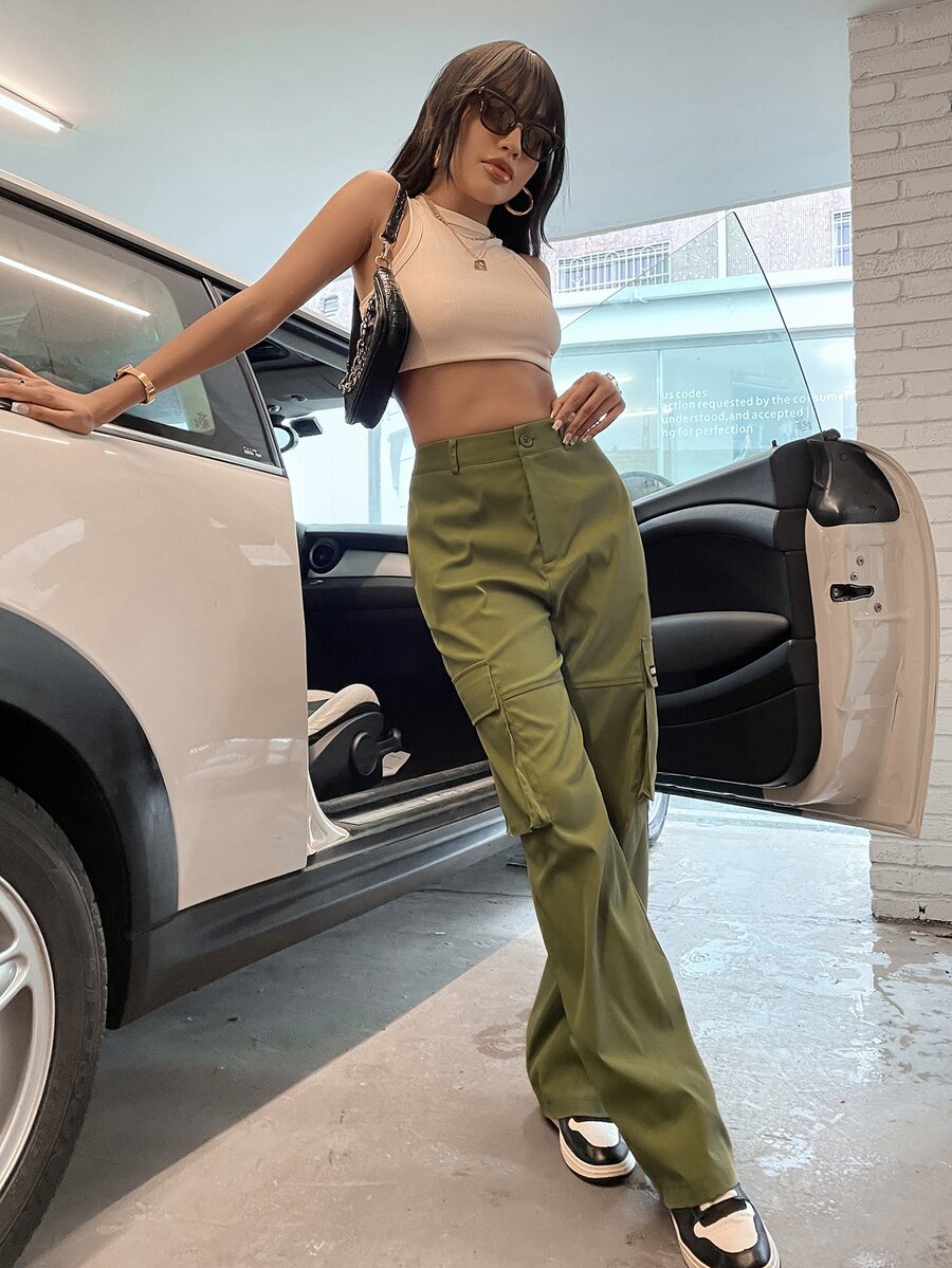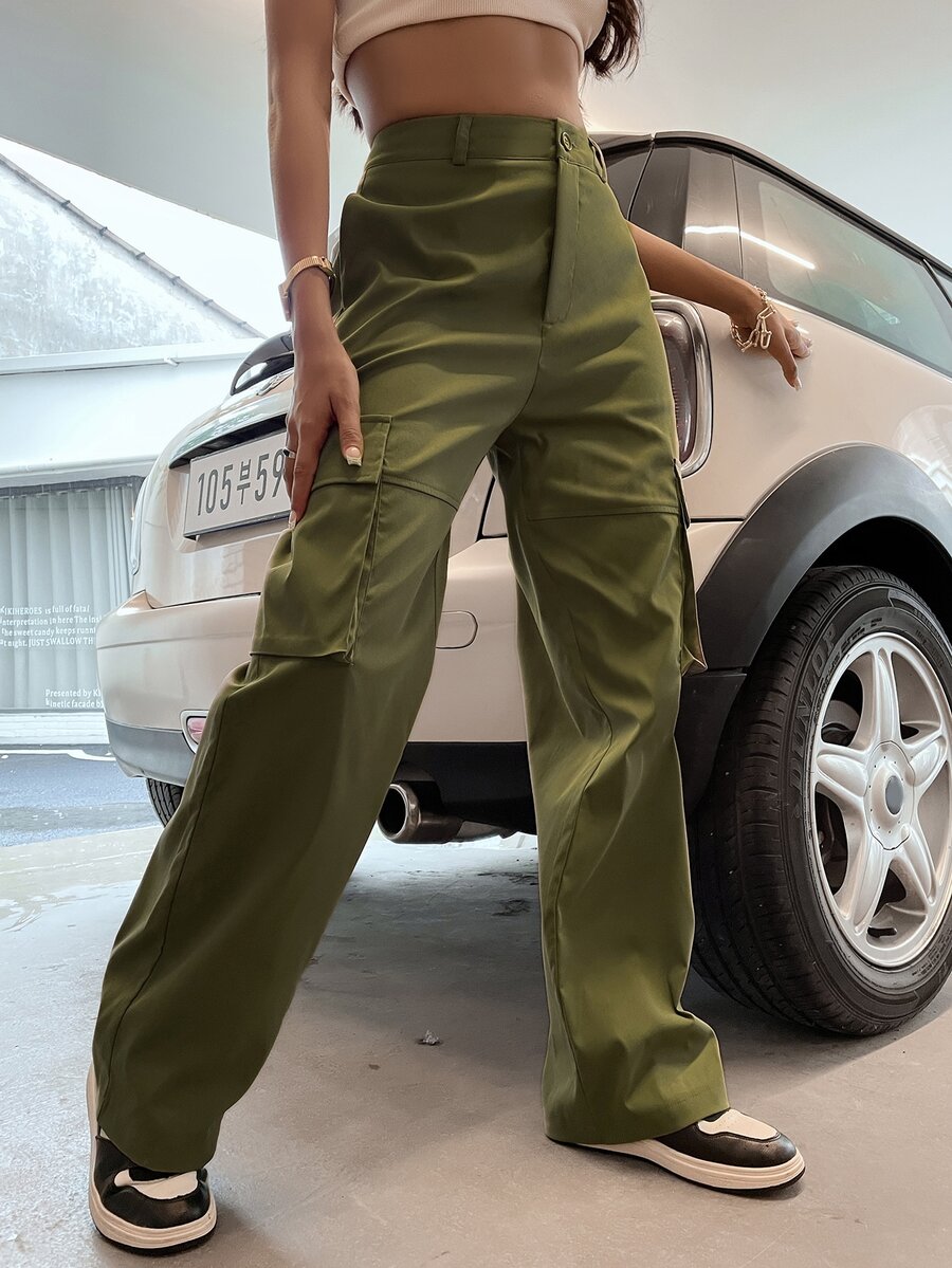 Pantalones cargo con diseño de parche de letra con bolsillo con solapa
