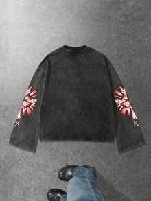 Street Life Camiseta de manga larga casual y holgada con cuello redondo y estampado de ángel para hombres