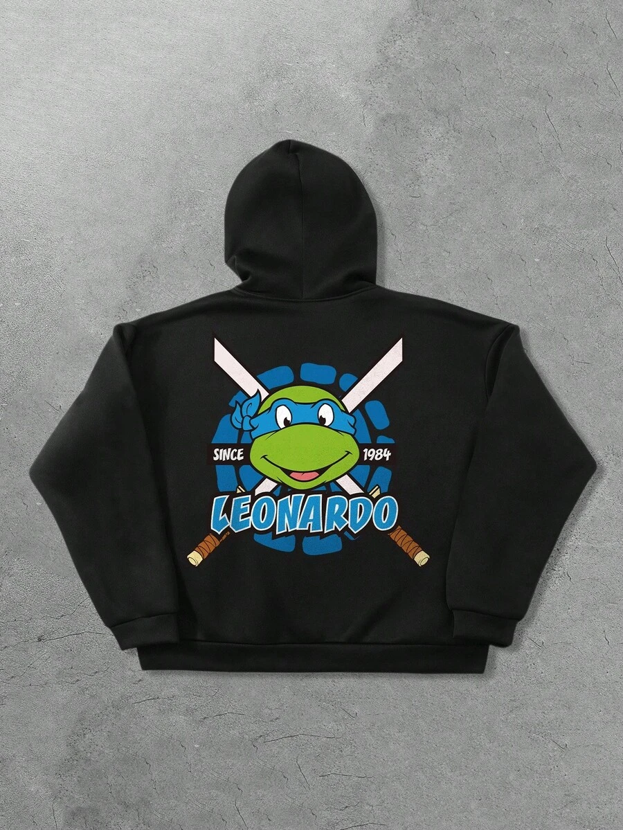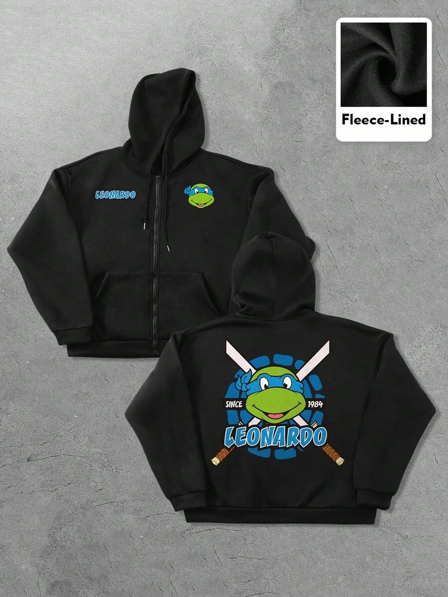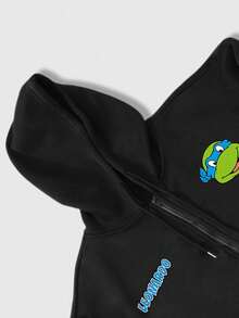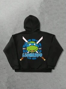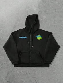 TEENAGE MUTANT NINJA TURTLES X ROMWE Sudadera con capucha con cremallera, estampado de letras y tortugas, casual para hombre, otoño