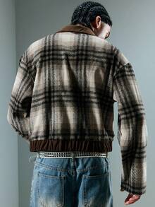 Street Life Abrigo corto casual de hombre con parches a cuadros y grosor