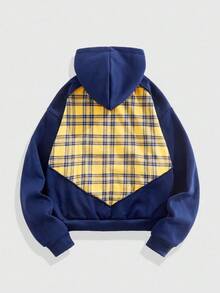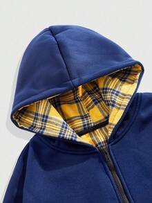 Street Life Sudadera con capucha casual de hombre con cremallera, estampado de cuadros y parches, para otoño