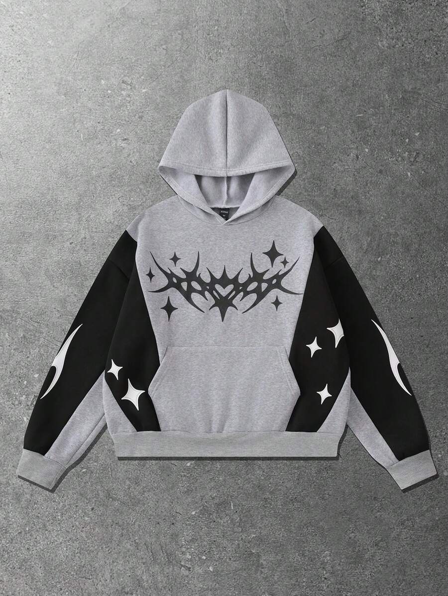Street Life Sudadera con capucha de ajuste holgado con estampado de bloques de color para hombre, para el invierno