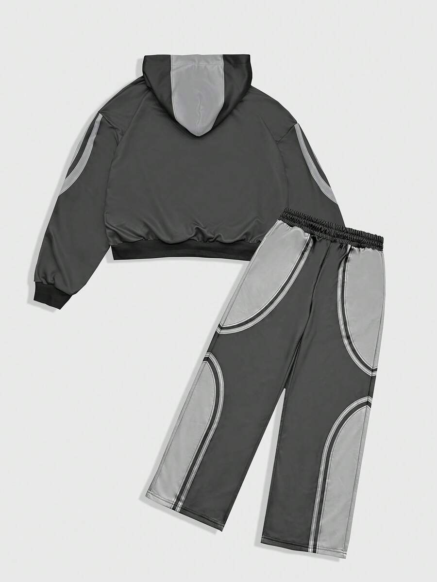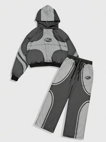 Street Life Conjunto de sudadera con capucha y pantalones de color contrastante para hombre