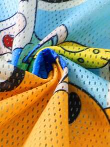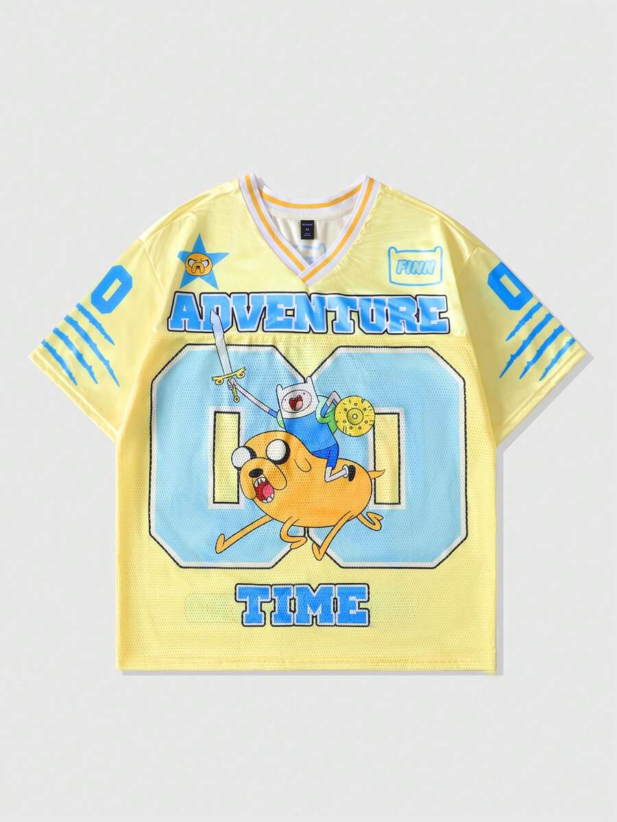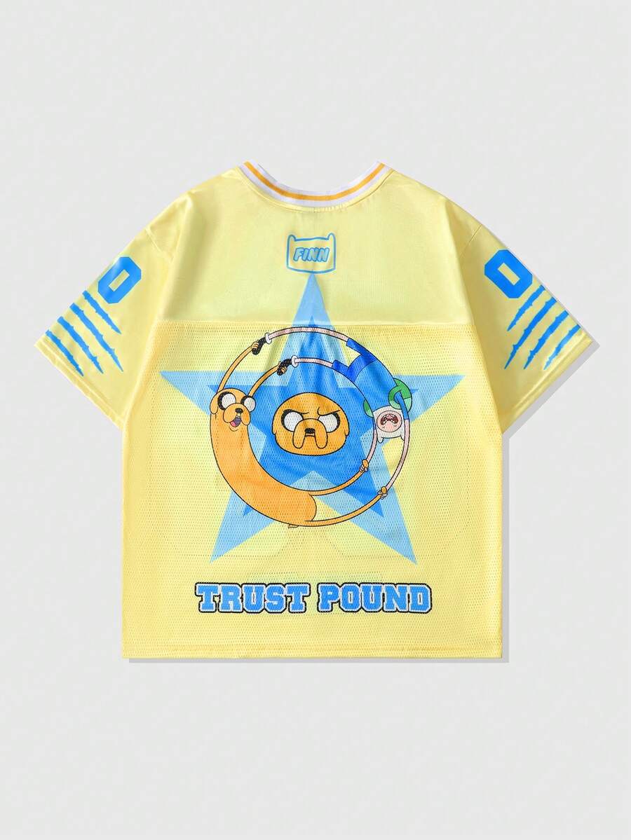 Adventure Time X ROMWE Camiseta deportiva de manga corta con parches de malla y estampado de perro para hombre