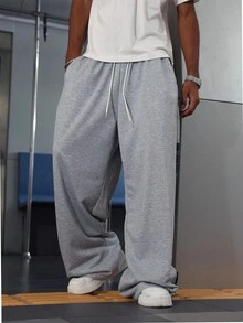 Prep Pantalones anchos con cintura con cordón, parche y bolsillo a cuadros para hombre, para otoño