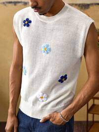 Jersey de punto casual de verano con decoración floral 3D para hombres