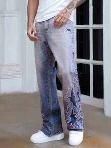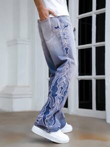 Street Life Jeans de mezclilla con parche bordado y decoración de remaches para hombres