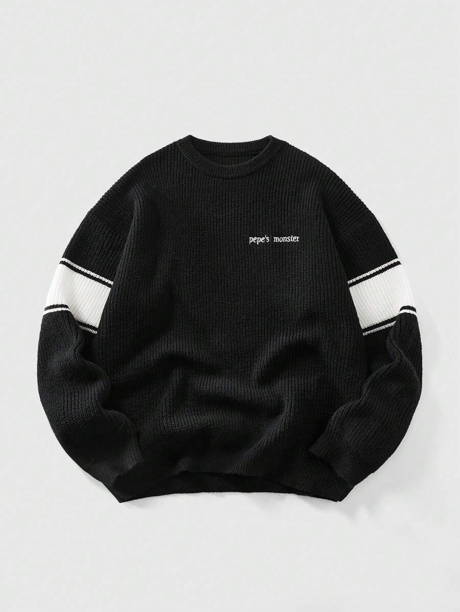 Street Life Jersey casual minimalista de cuello redondo, manga larga, con bordado de letras y contraste de color para hombre, otoño/invierno