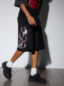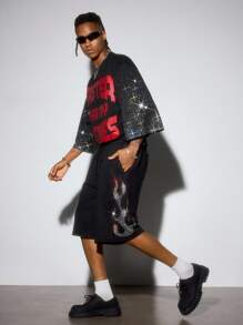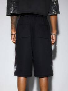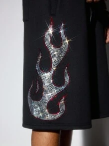 Street Life Pantalones cortos de moda con decoración de rhinestones para hombre