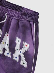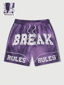 Street Life Pantalones cortos con cordón en la cintura, decorados con letras y rhinestones de colores para hombre