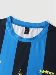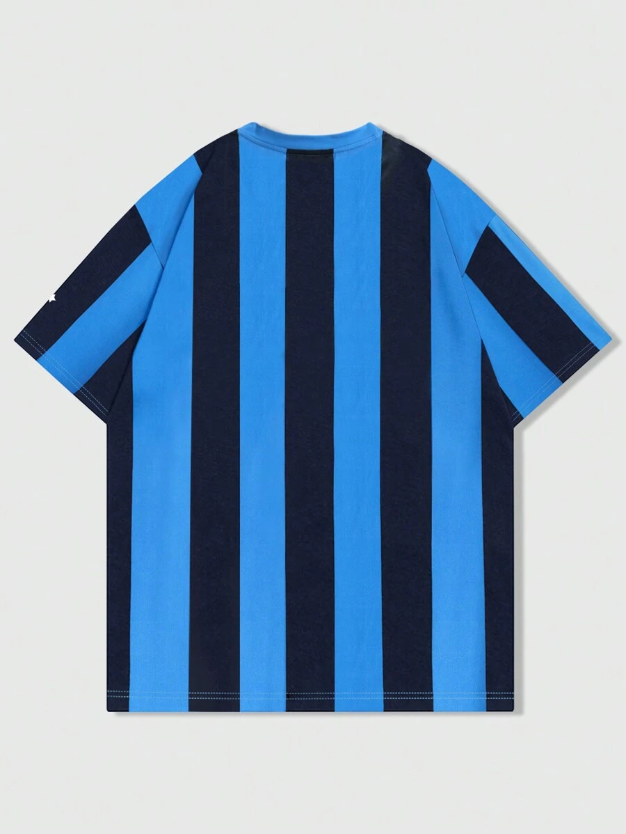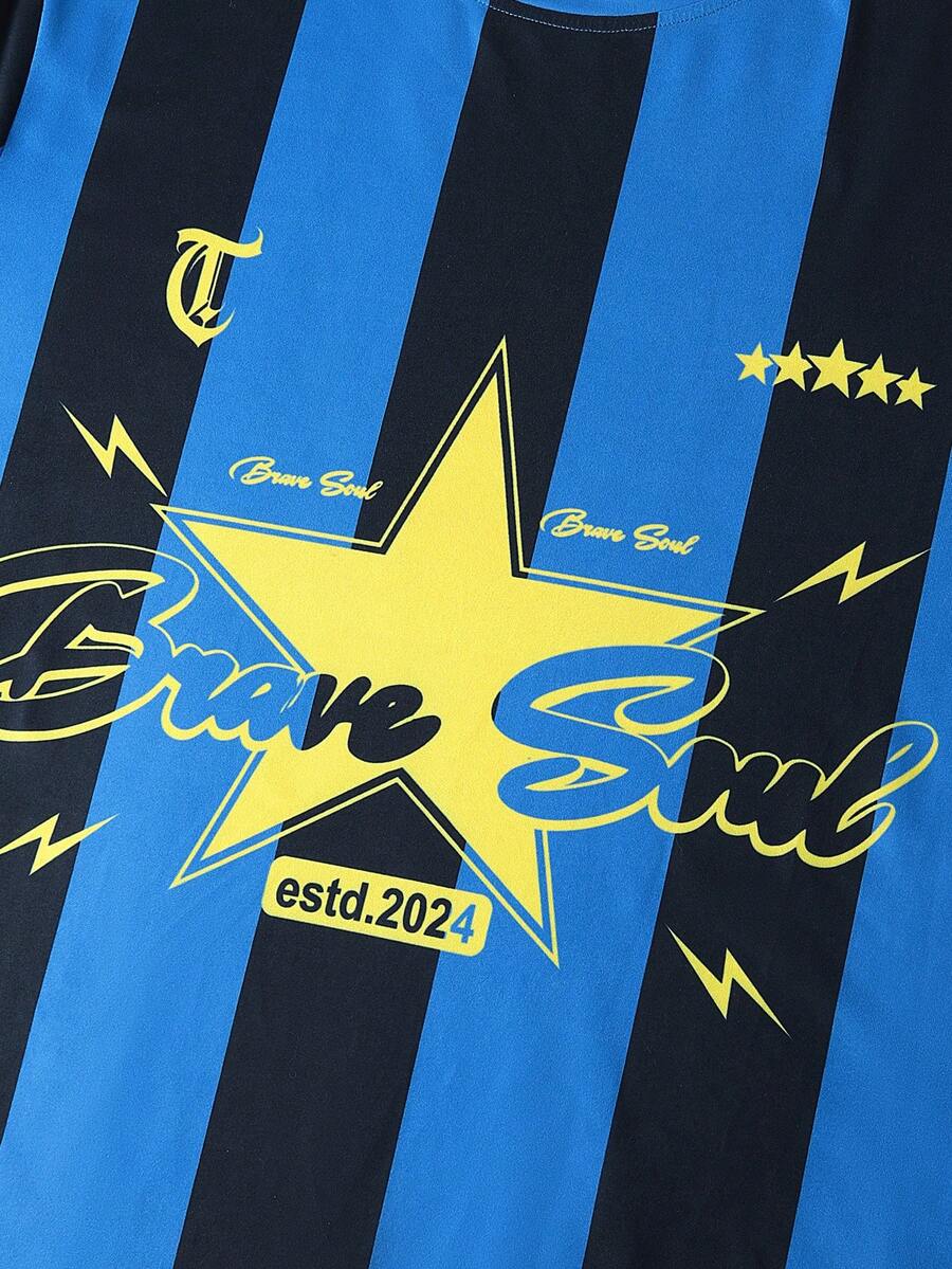 Prep Camiseta de verano para hombre de estilo universitario a rayas con bloque de color, estampado de letra y estrella