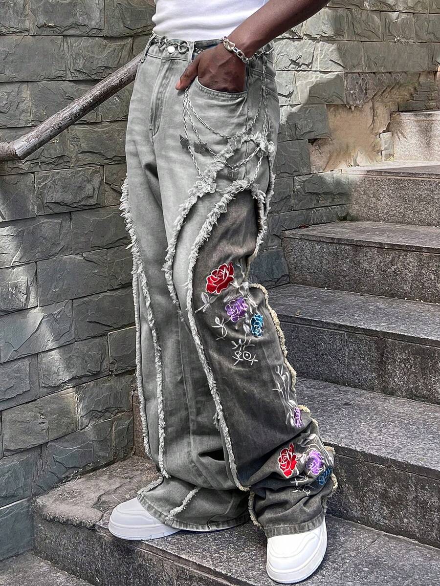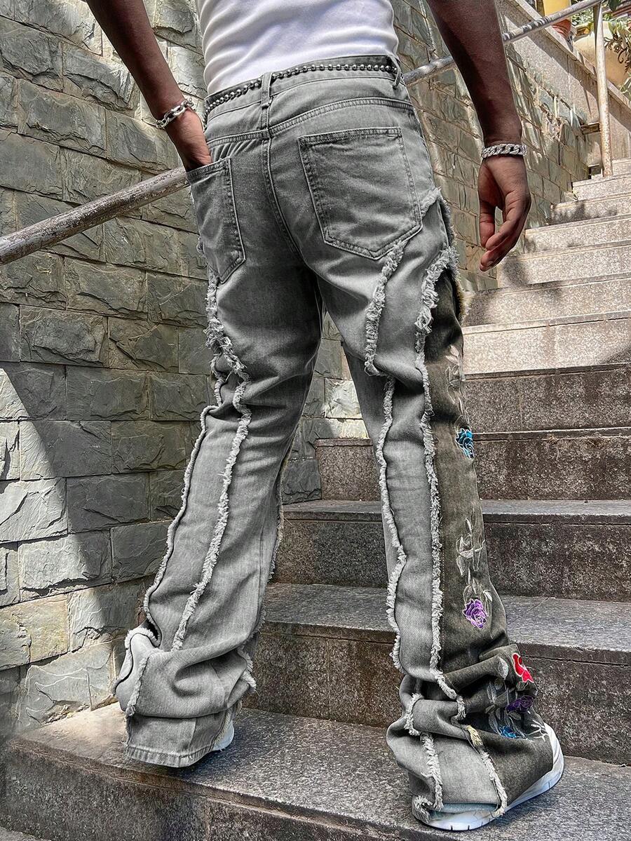 Street Life Jeans con parches, bordados florales y desgastados para hombre