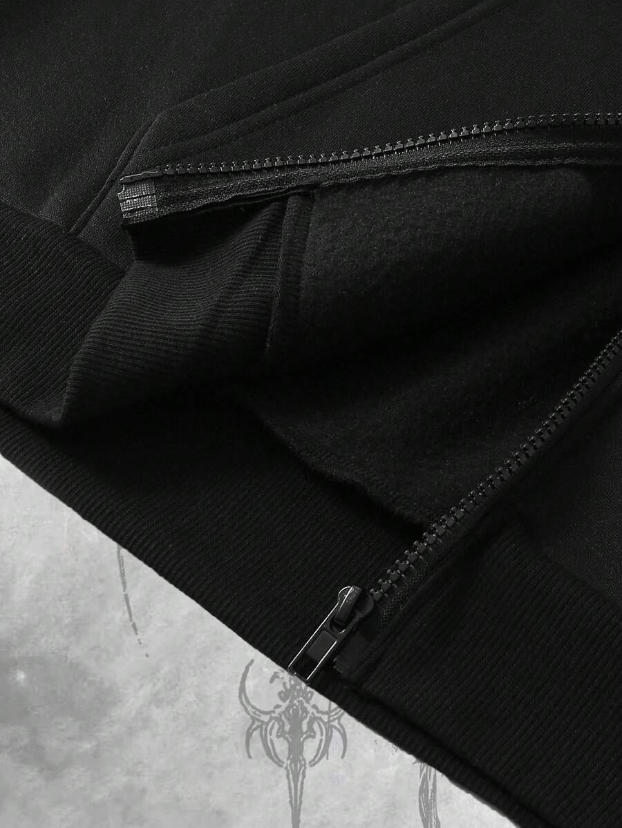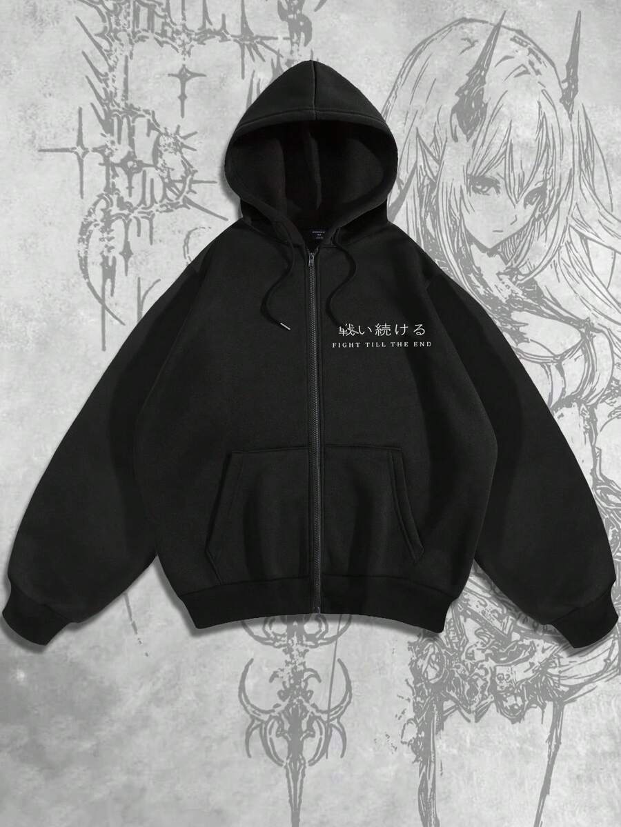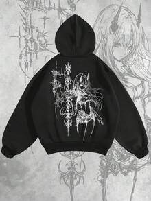 Anime Sudadera con capucha negra con estampado gráfico estilo Japón Y2K de forro polar para hombres, estética oscura