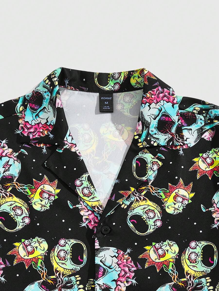 Rick and Morty | ROMWE Camisa de manga corta para hombre con estampado de calavera, casual, para el verano