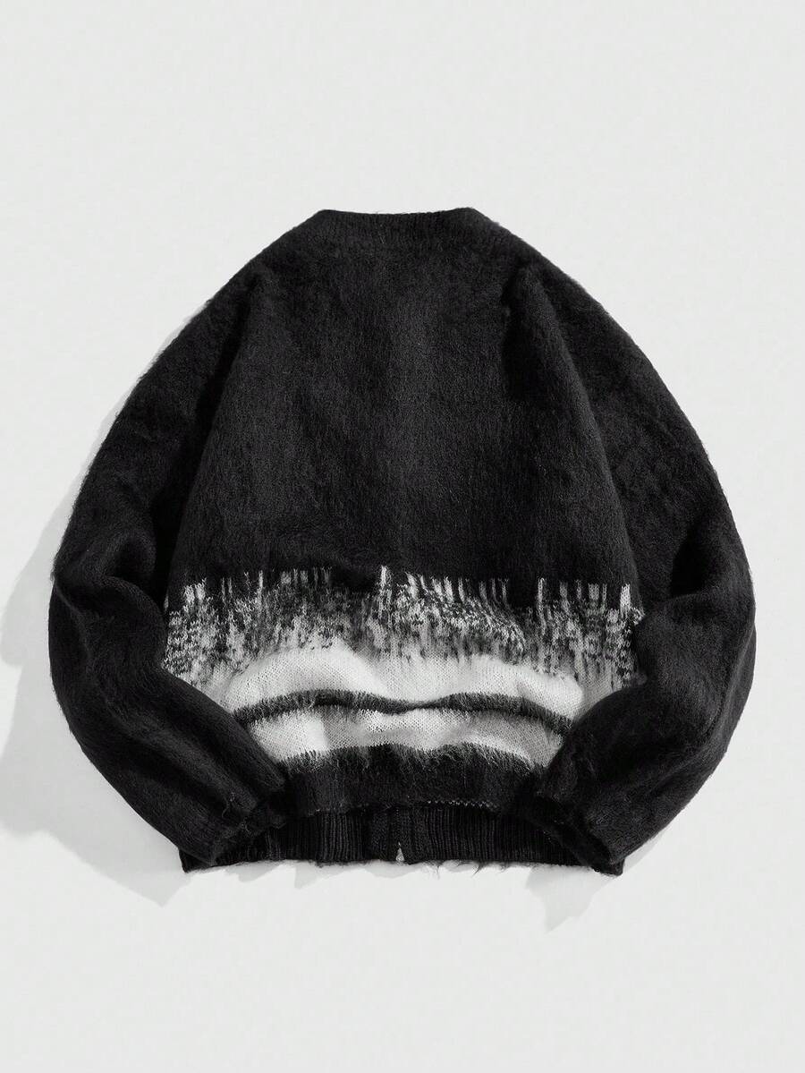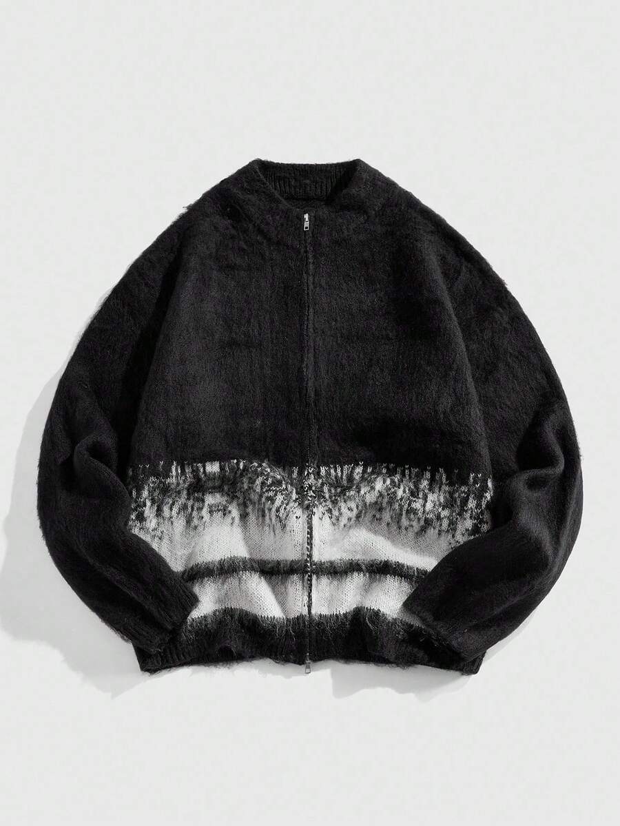 Street Life Suéter informal de manga larga con cremallera y contraste de color tejido para hombres, otoño e invierno