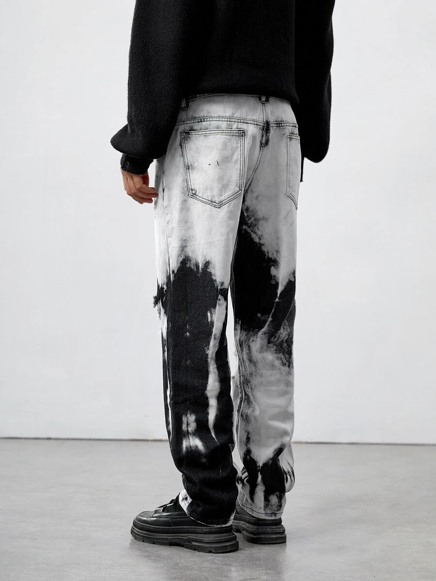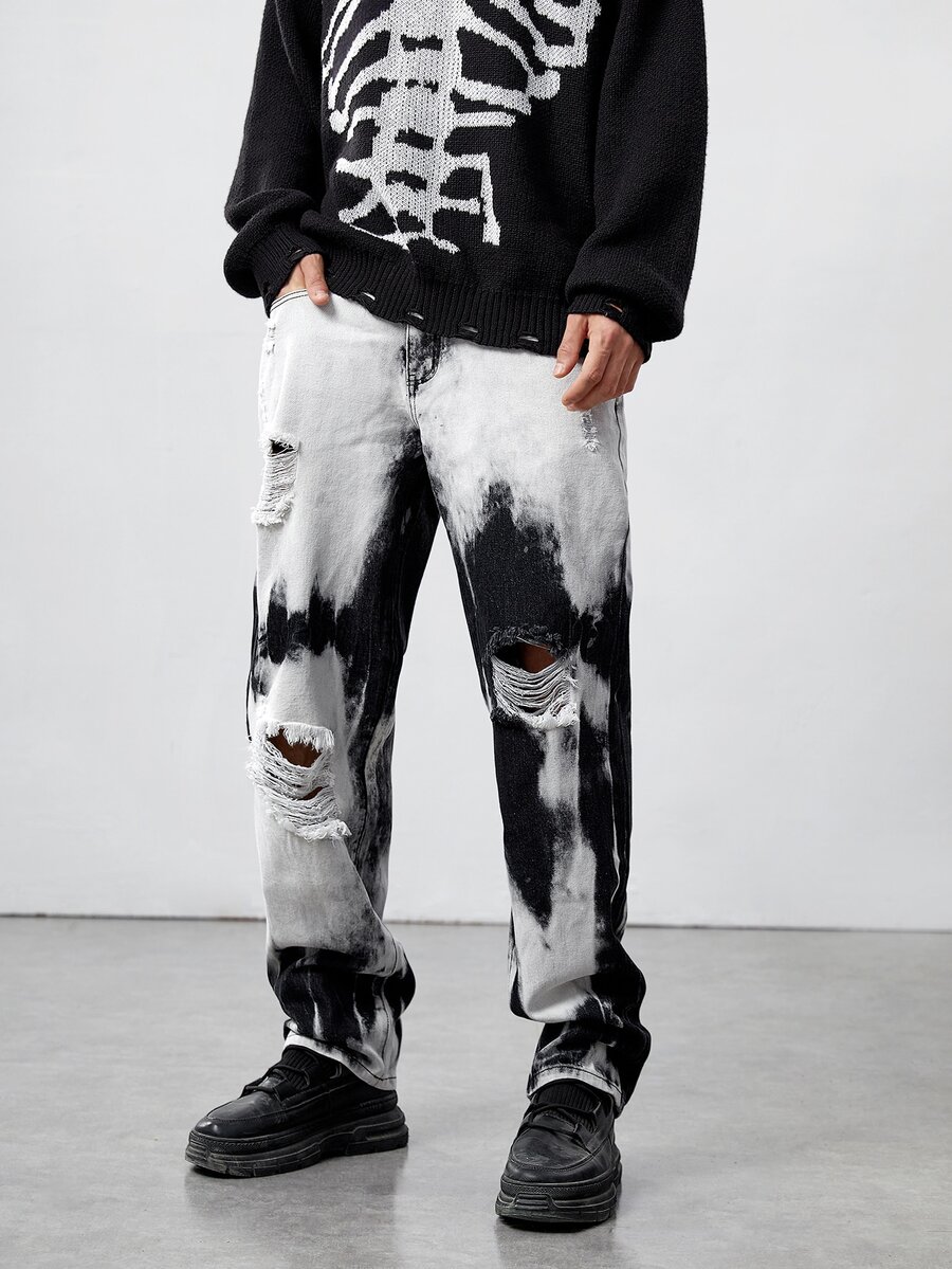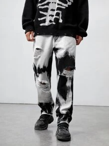 Jeans Holgados Rasgados De Pierna Recta Teñidos Anudados De Para Hombres