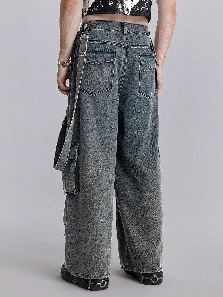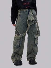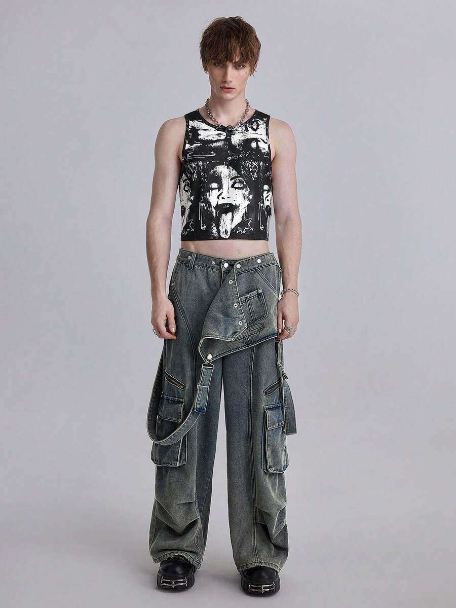 ROMWE Avant Peto cargo con bolsillo con solapa lateral para hombre, escuela