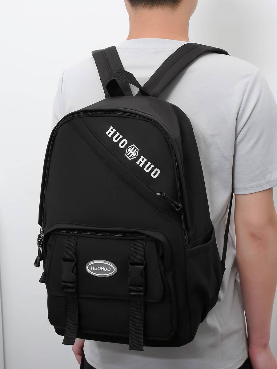 Hombres Mochila con estampado de letra con hebilla