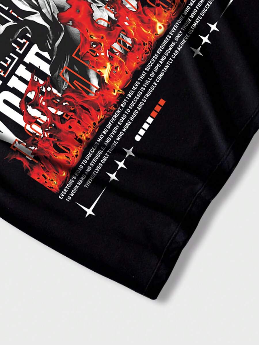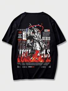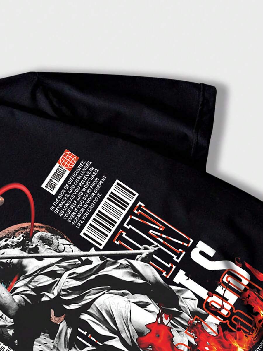 Street Life Camiseta gráfica con eslogan y figura para hombres, escuela
