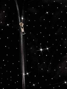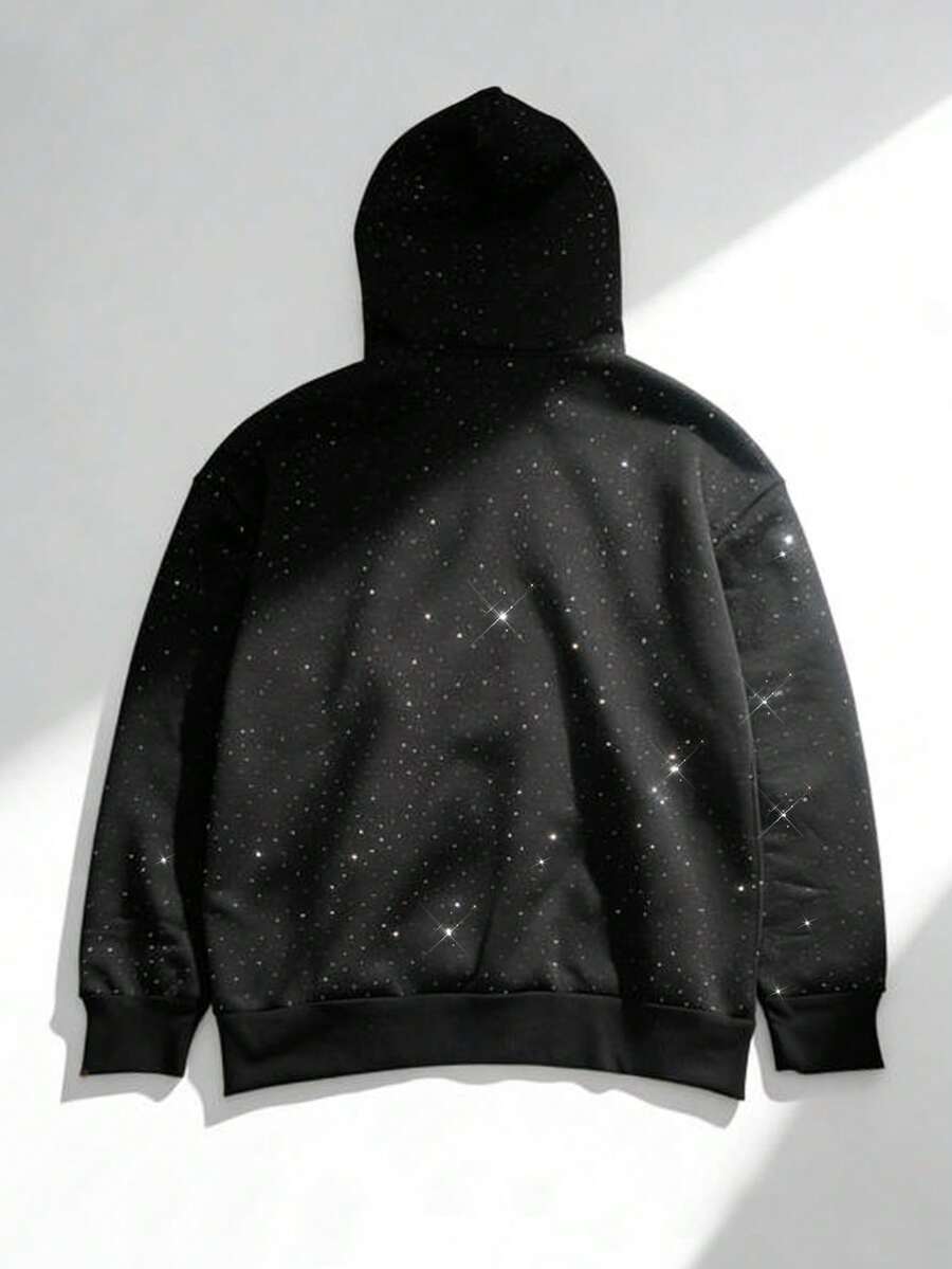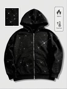 Sudadera con capucha casual con cremallera y pedrería gruesa para hombres