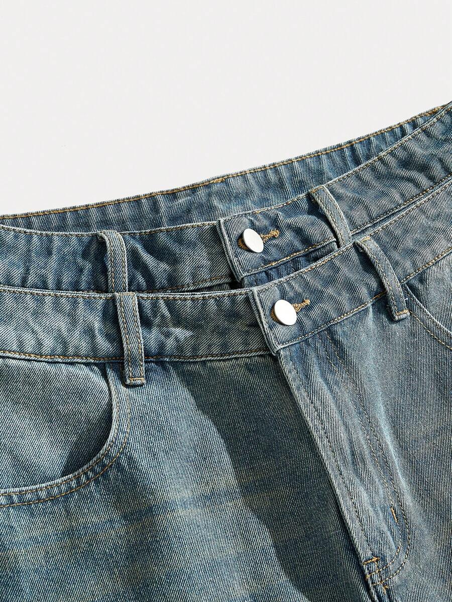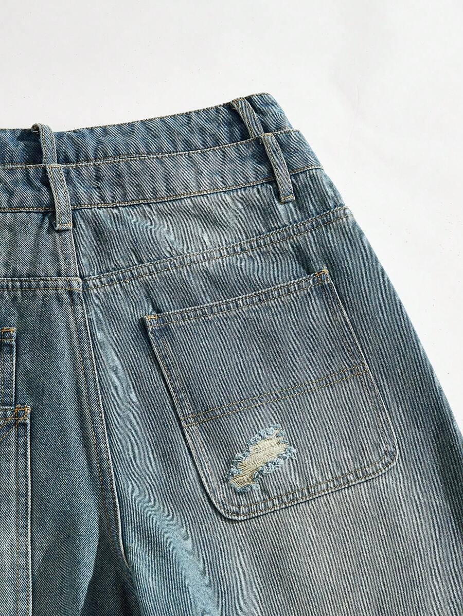 Prep Pantalones cortos vaqueros casuales y versátiles para hombre con bolsillo y estampado de estrella desgastado