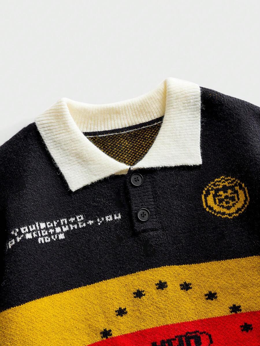 Suéter de punto con estilo de fútbol retro para hombres, ropa de calle de moda