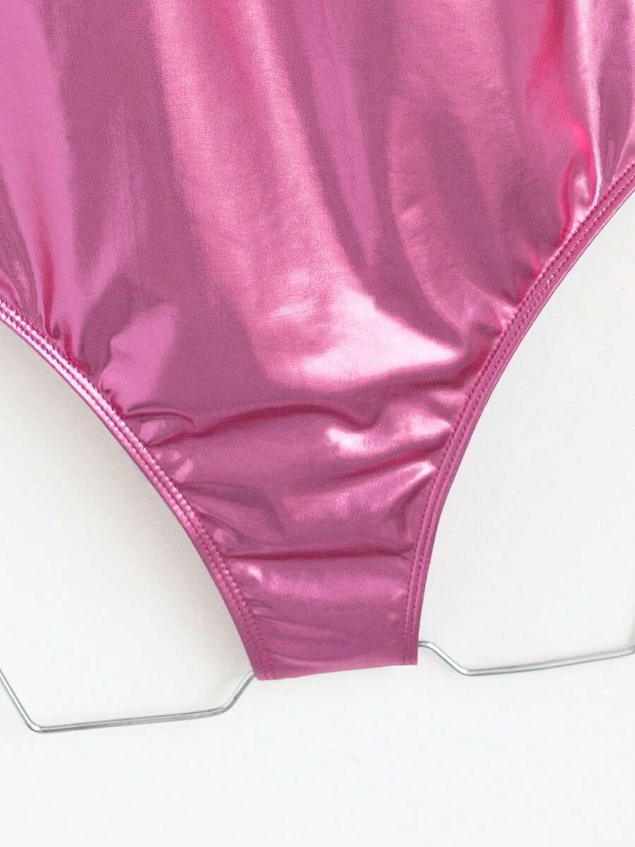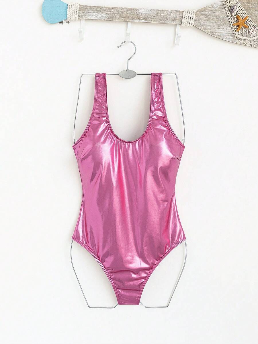 Traje de baño de una pieza con escote de cuello de barco metálico, para vacaciones de verano en la playa