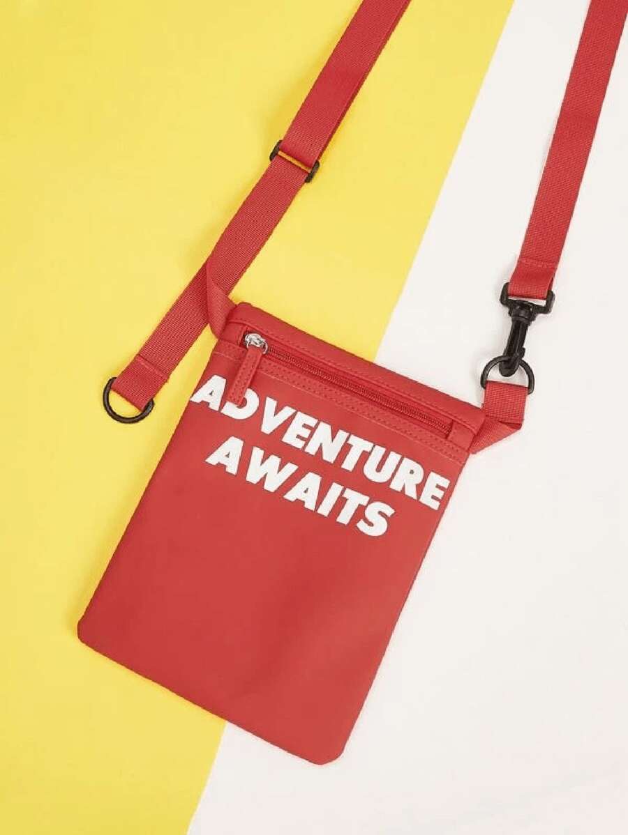 Bolsa cuadrada mini rojo neón con estampado de letra