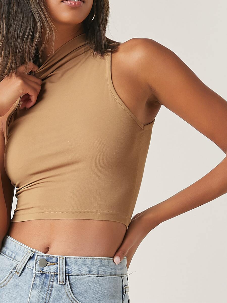 Top corto tank unicolor de cuello alto