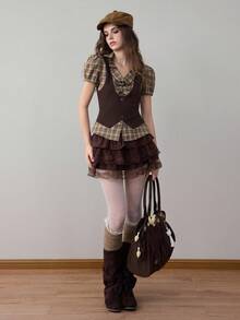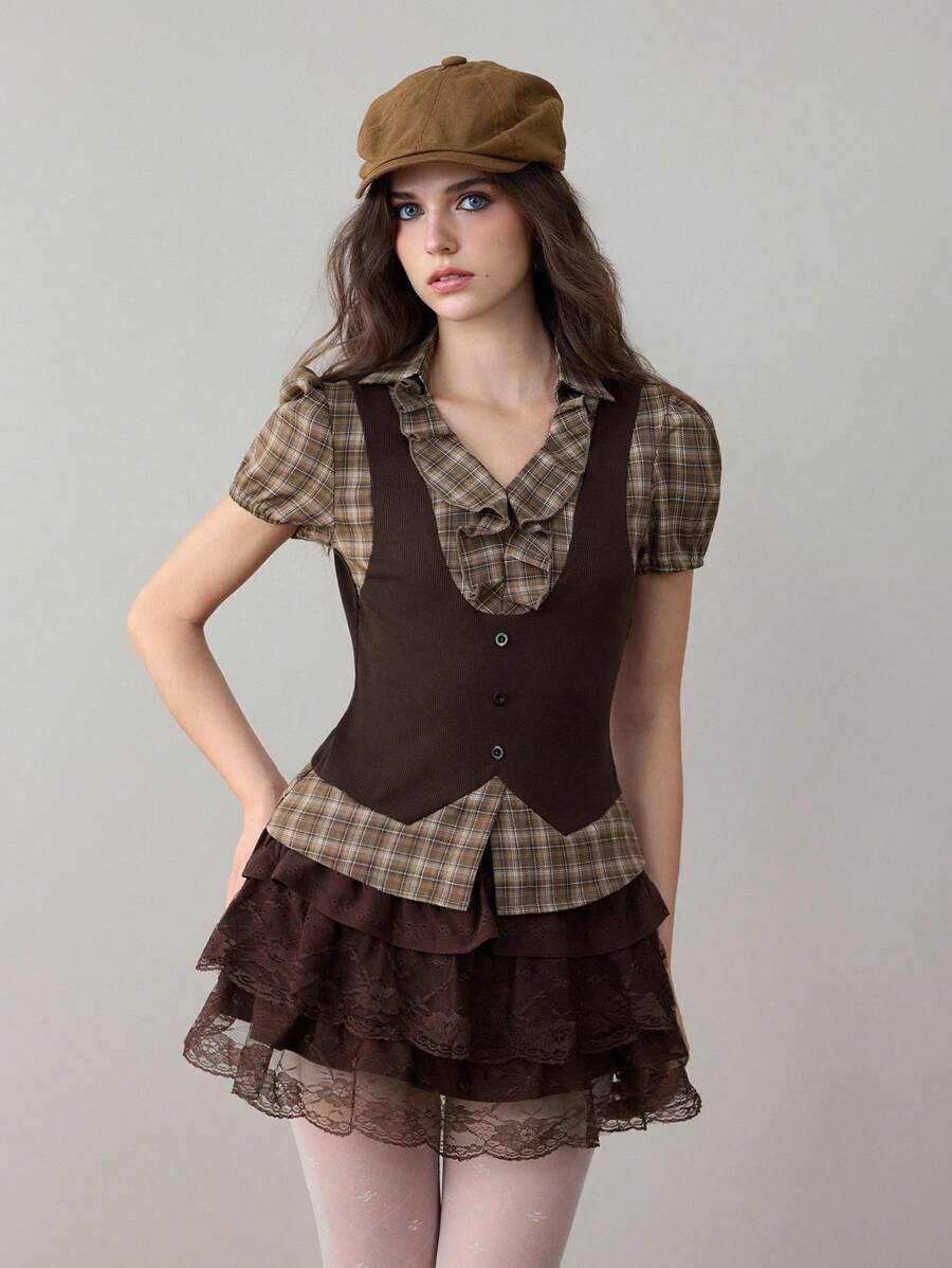 ROMWE Avant Camisa de mujer con patchwork a cuadros inspirada en la naturaleza