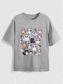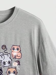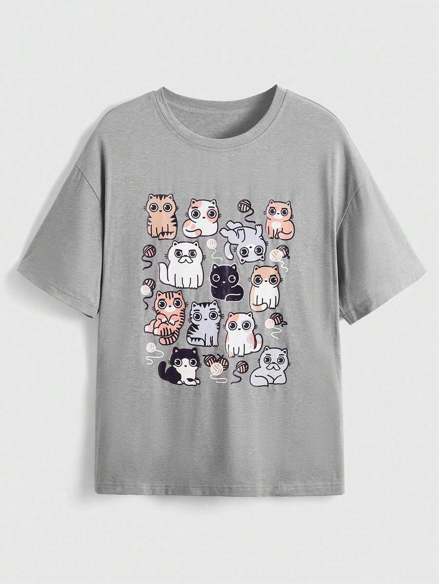 Nemons Camiseta De Manga Corta Con Patrón De Gato De Dibujos Animados