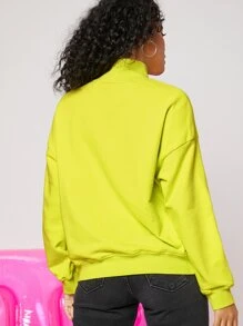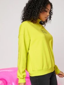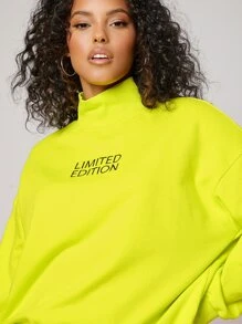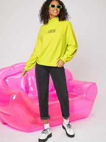 Sudadera neón de cuello cisne con estampado de letra de hombros caídos