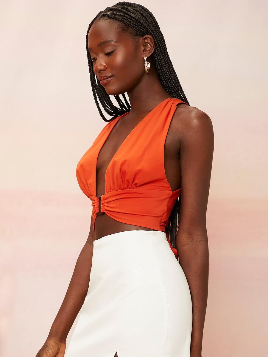 Top neón naranja con aro delantero de espalda abierta con cordón