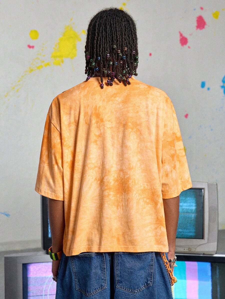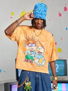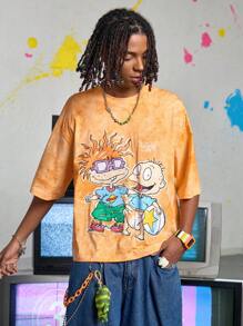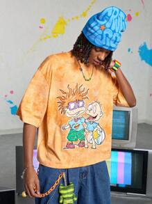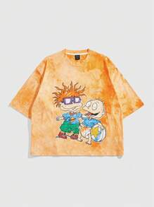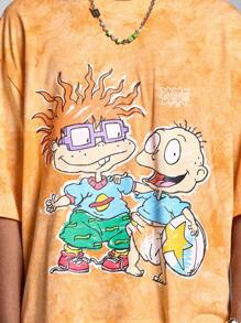Nick 90's X ROMWE Camiseta de manga corta holgada con estampado de teñido anudado y diseño de dibujos animados para hombre