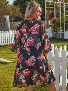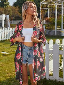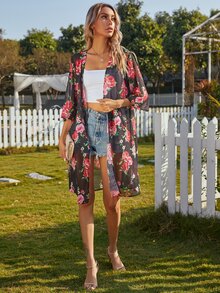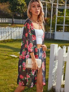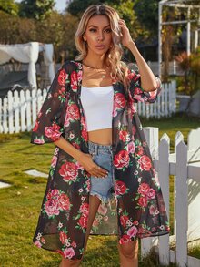 Kimono floral transparente