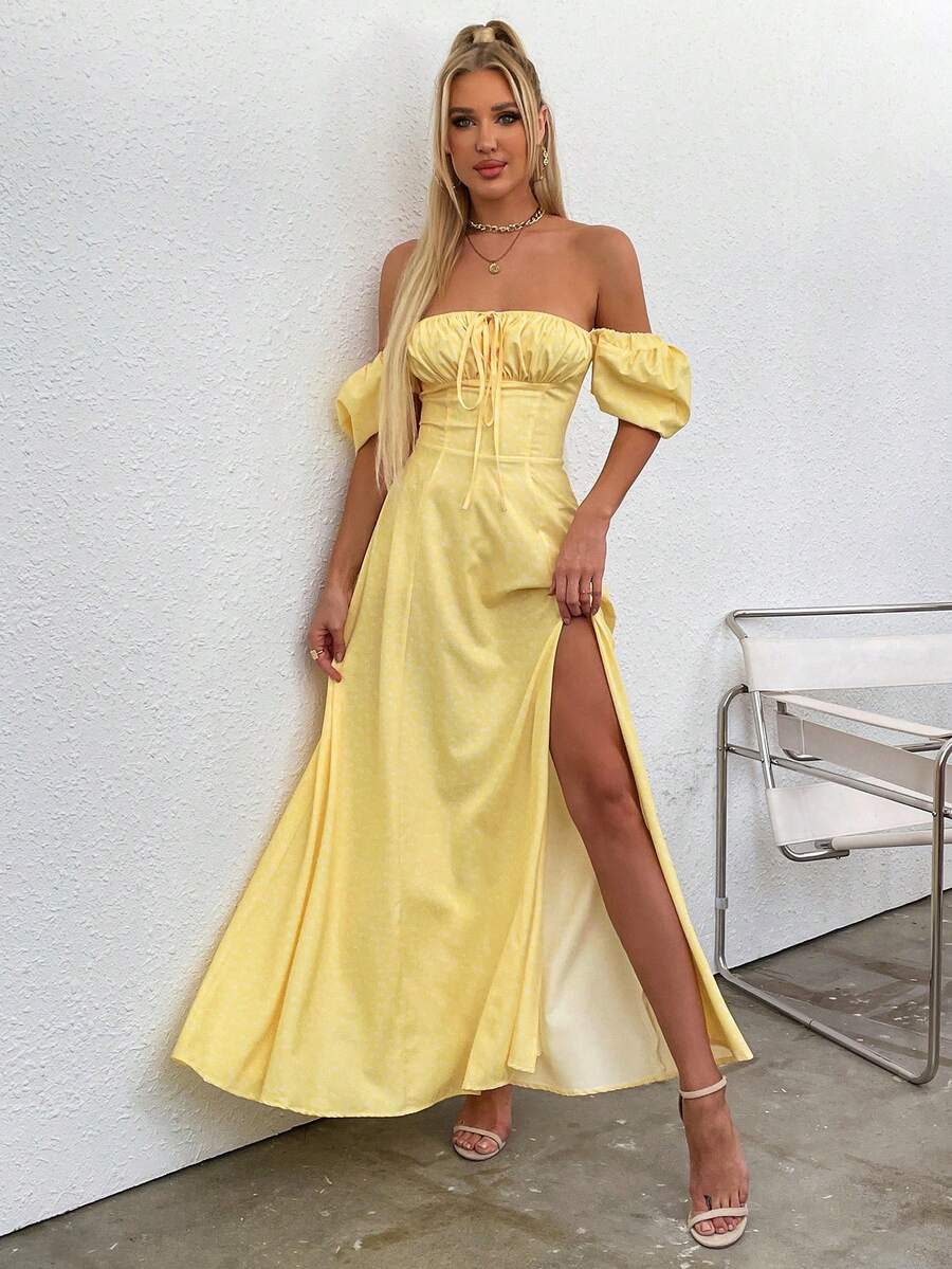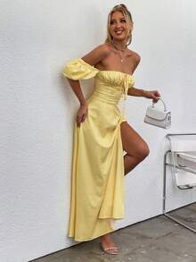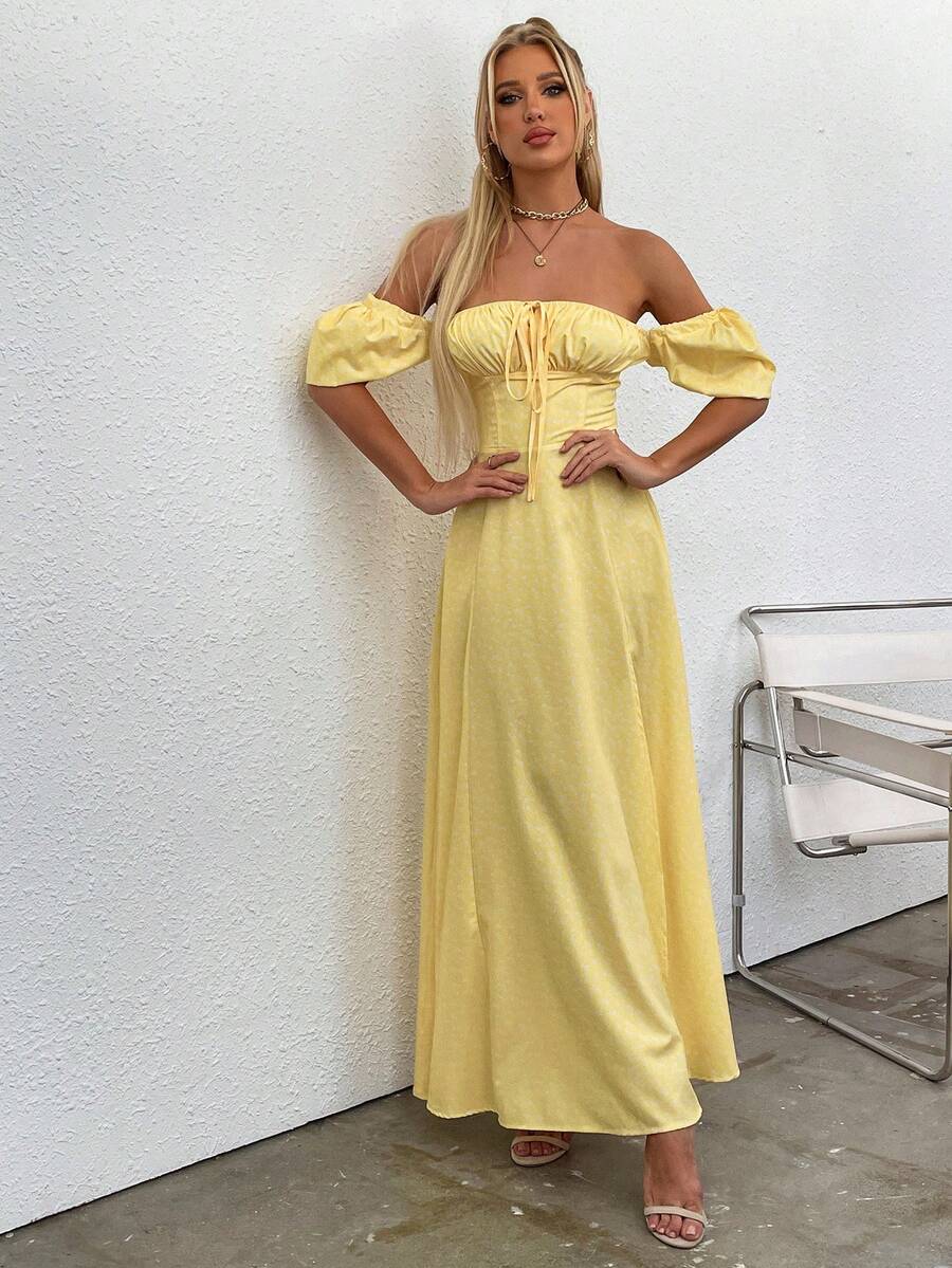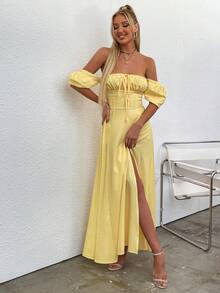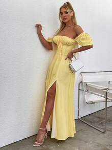 PARTHEA Vestido con estampado floral, mangas abullonadas y abertura alta