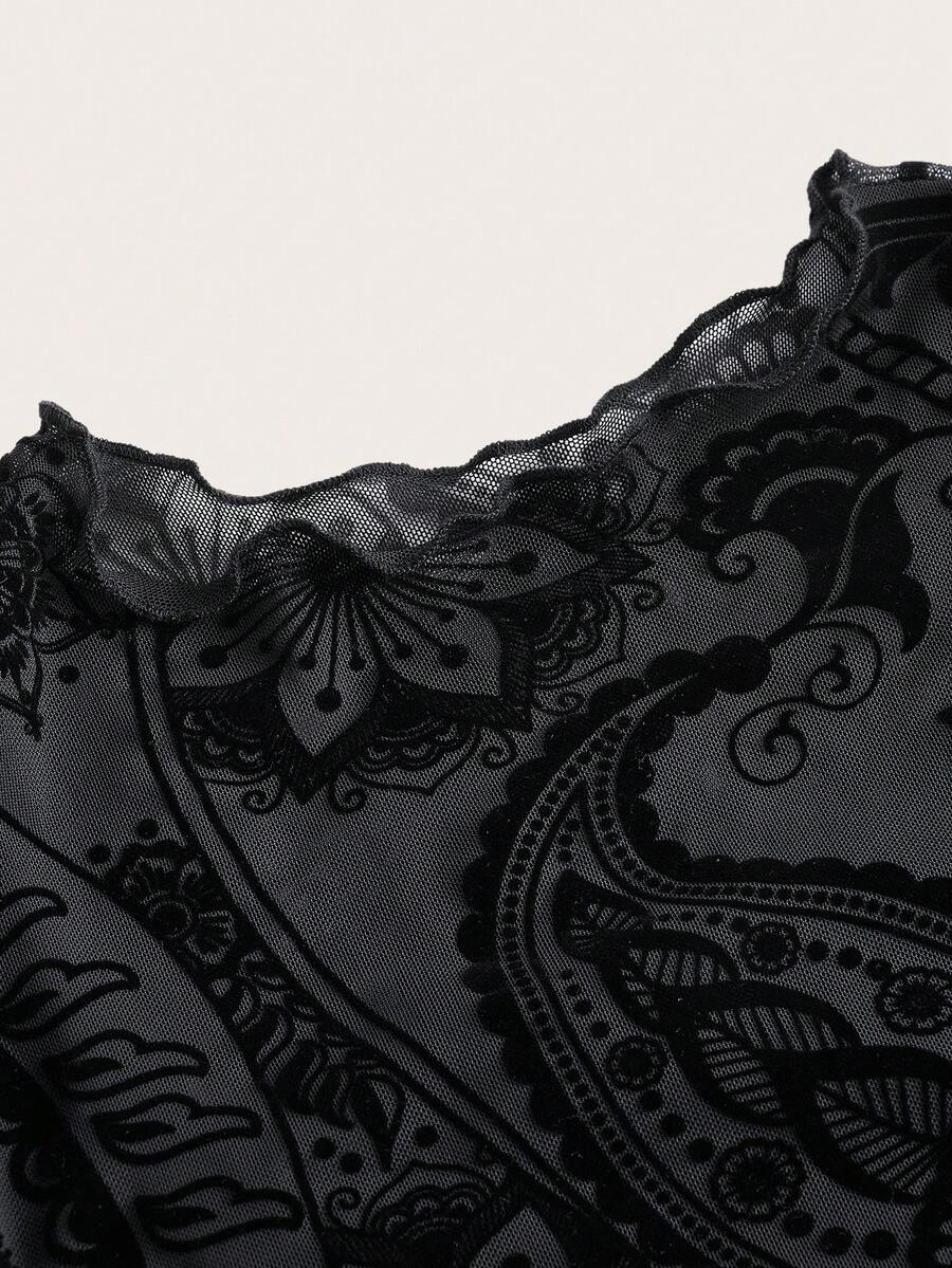 Vestido ajustado con estampado de paisley de malla sin cinturón