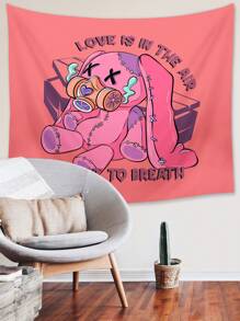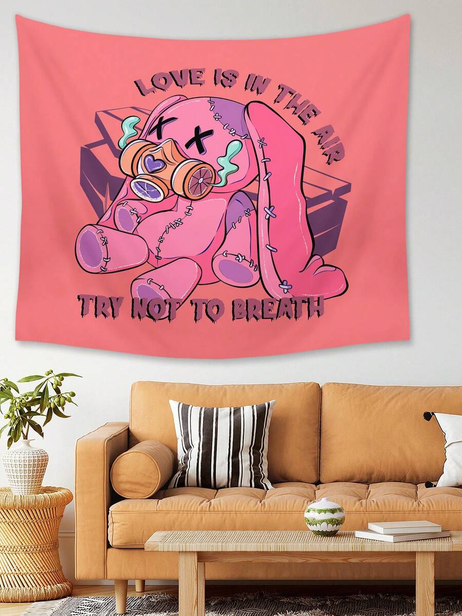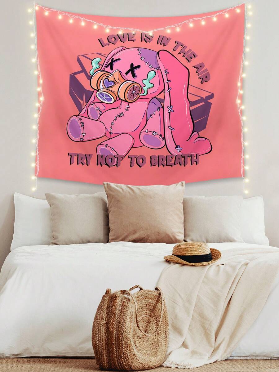 Peace 1 pieza con slogan con estampado de dibujos animados Tapiz , dulce lavable Tapiz póster Colgante de pared para dormitorio estético