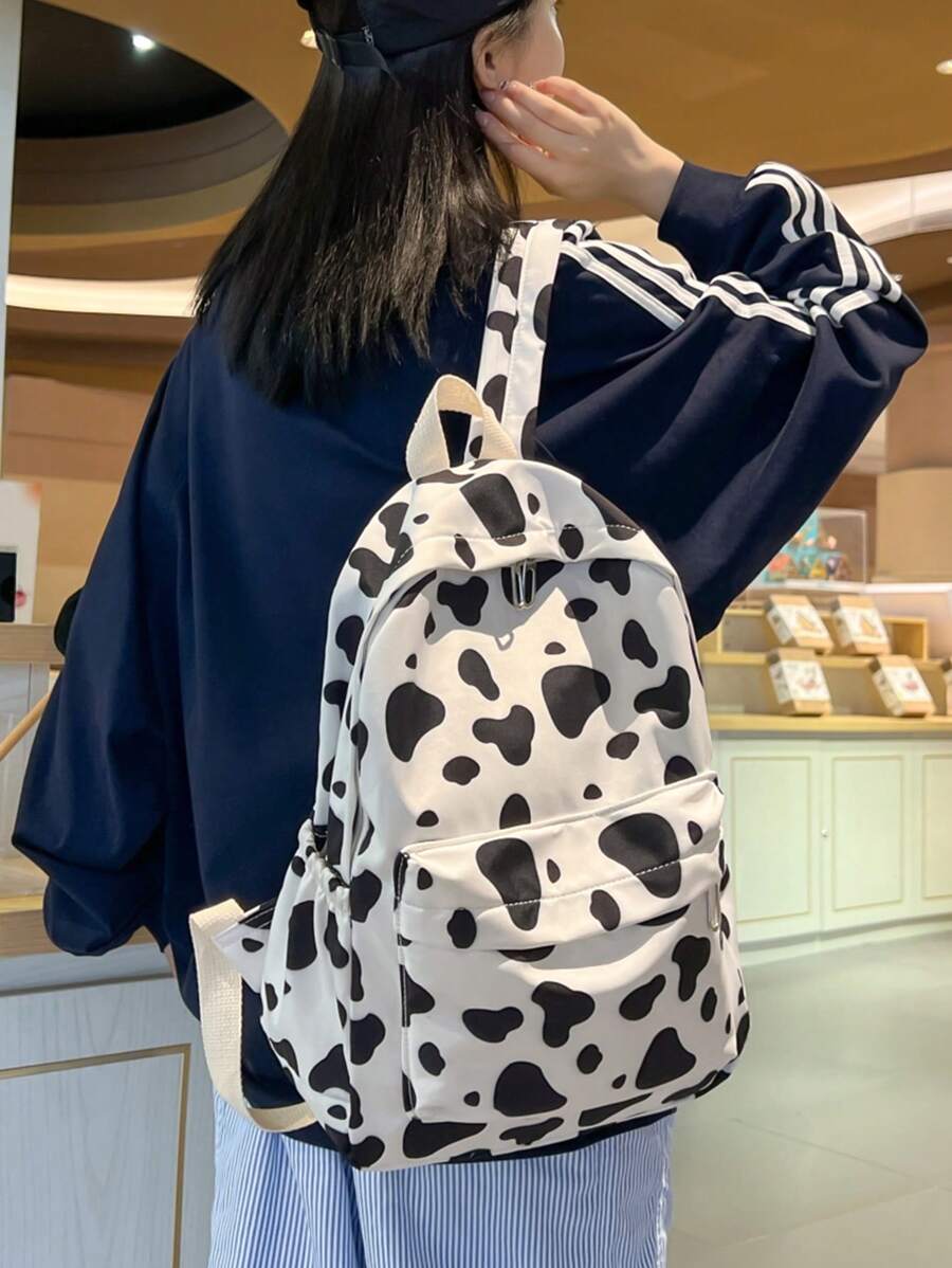 Kawaii Bolso de hombro personalizado con diseño de vaca lindo y de dibujos animados, estilo universitario fresco para estudiantes de secundaria y preparatoria, mochila coreana