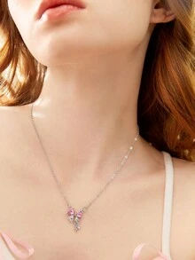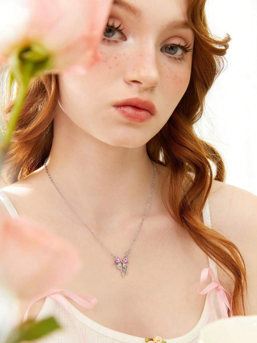 Kawaii Collar Con Lazo En Forma De Corazón Rosa