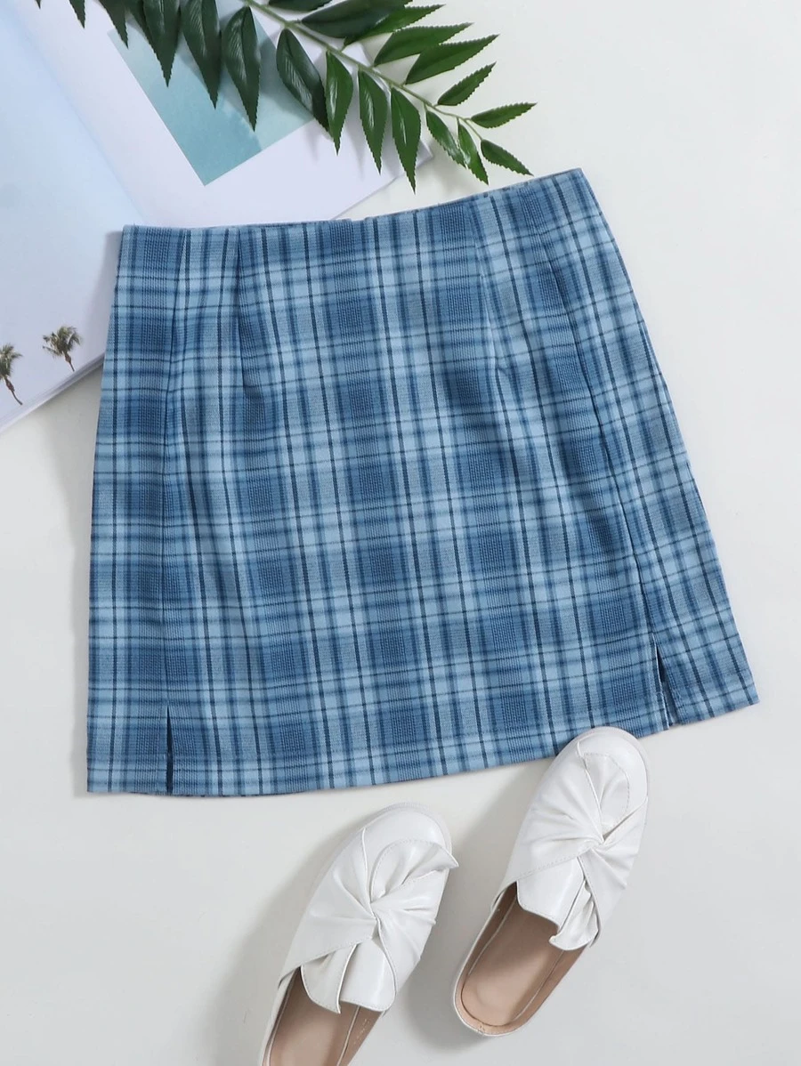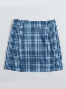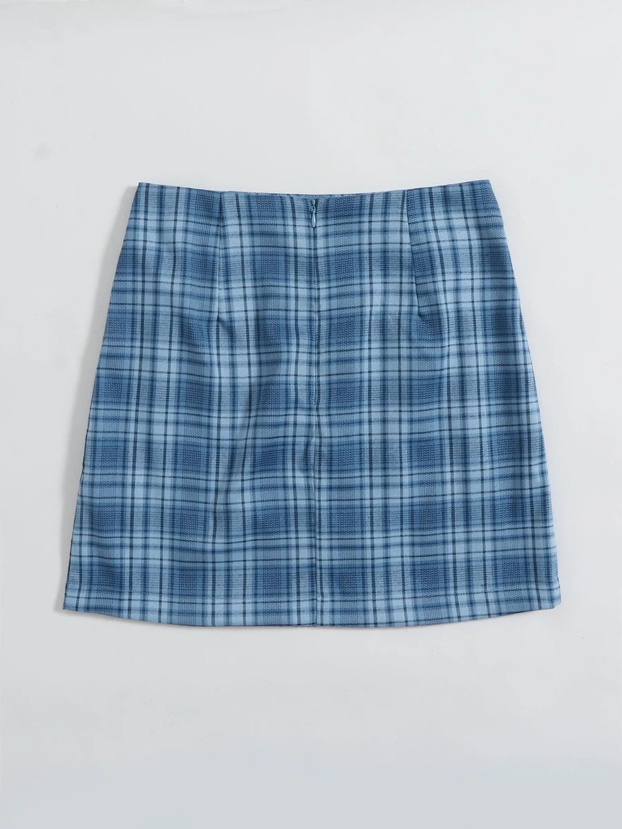 Falda línea A bajo con abertura de cuadros
