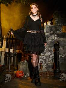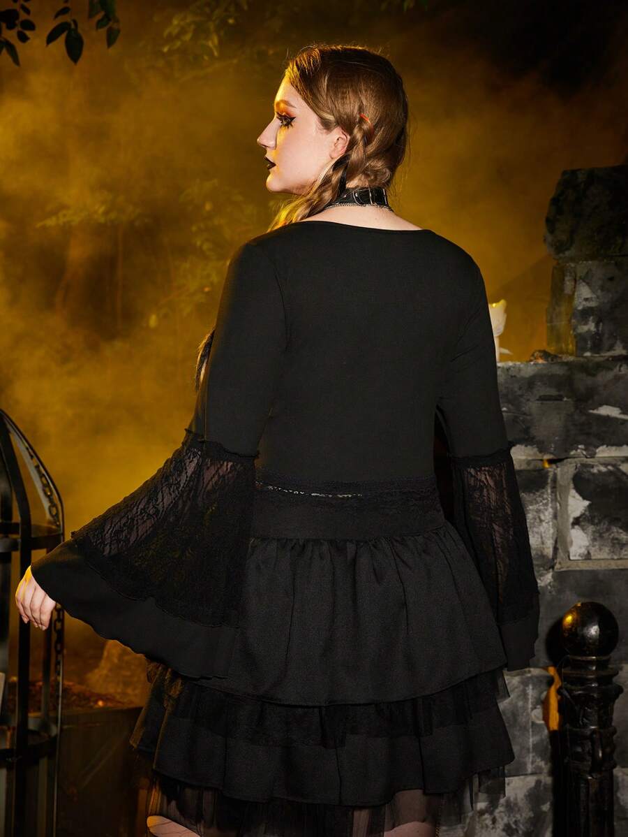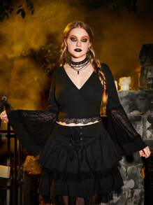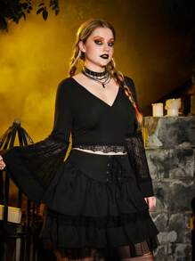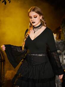 Talla grande Top con encaje en contraste de manga amplia