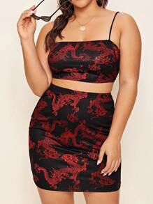 Conjunto top de tirantes corto con estampado de dragón con falda