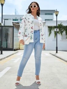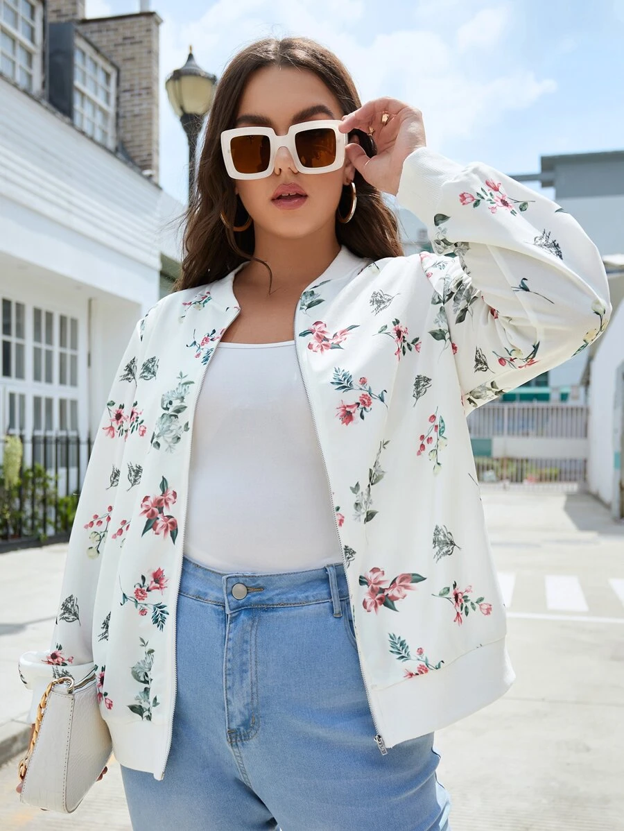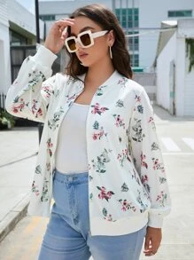 Cazadora tipo bomber con estampado floral con cremallera
