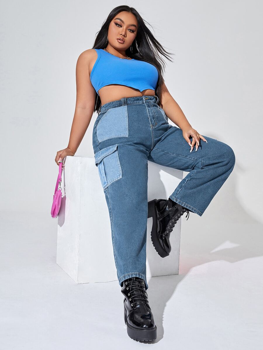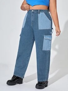 Jeans de ajuste mom de talle alto en contraste con bolsillo