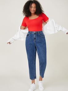 Jeans mom corto de cintura alta