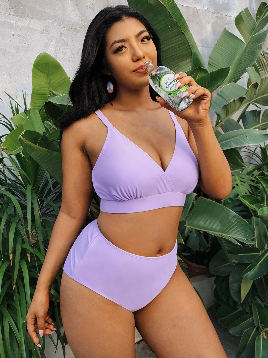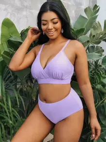 Conjunto de bikini de talla grande de cintura alta para playa de verano
